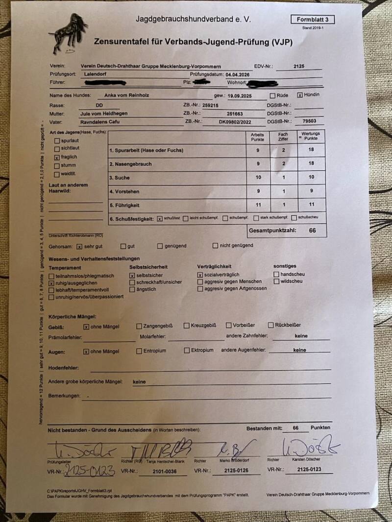 Beide Elterntiere verfügen über herausragende jagdliche Anlagen, ein sicheres Wesen und ein exzellentes Exterieur.